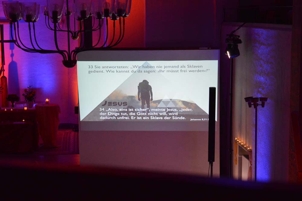 In seiner Predigt erinnerte Tobi Liebmann daran, dass wir heute zwar so viele Freiheiten genießen wie nie zuvor, uns aber oft von Dingen abhängig machen – etwa von Instagram oder TikTok. Wirkliche Freiheit, so betonte er, finden wir nur im Glauben an Jesus Christus.