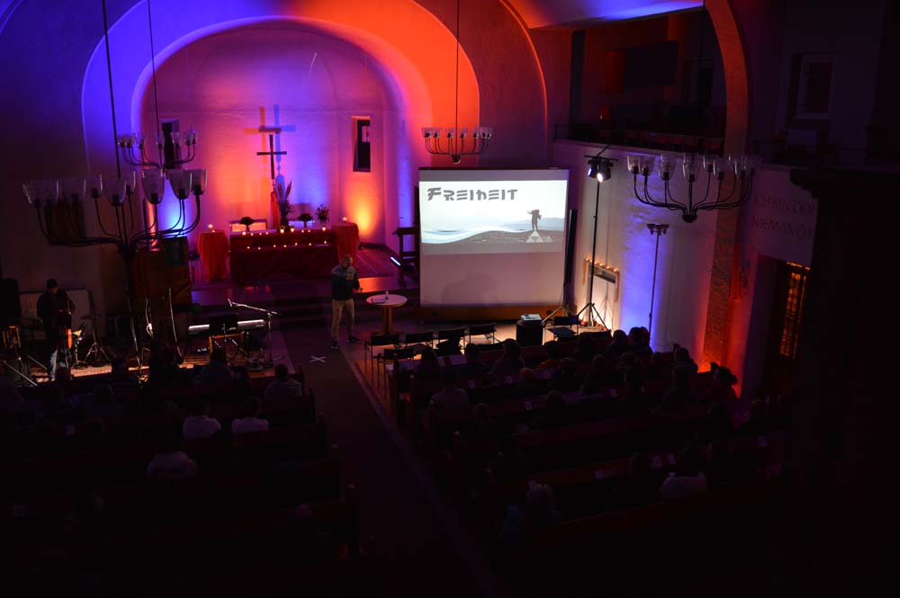 In seiner Predigt erinnerte Tobi Liebmann daran, dass wir heute zwar so viele Freiheiten genießen wie nie zuvor, uns aber oft von Dingen abhängig machen – etwa von Instagram oder TikTok. Wirkliche Freiheit, so betonte er, finden wir nur im Glauben an Jesus Christus.